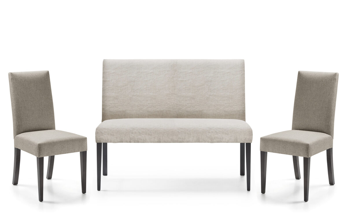 Chaque chaise ou banc de salle à manger peut être recouvert d'une infinité de tissus proposés par Manuel Larraga ou par notre client, ce qui fait de chaque pièce un modèle de mobilier rembourré unique.