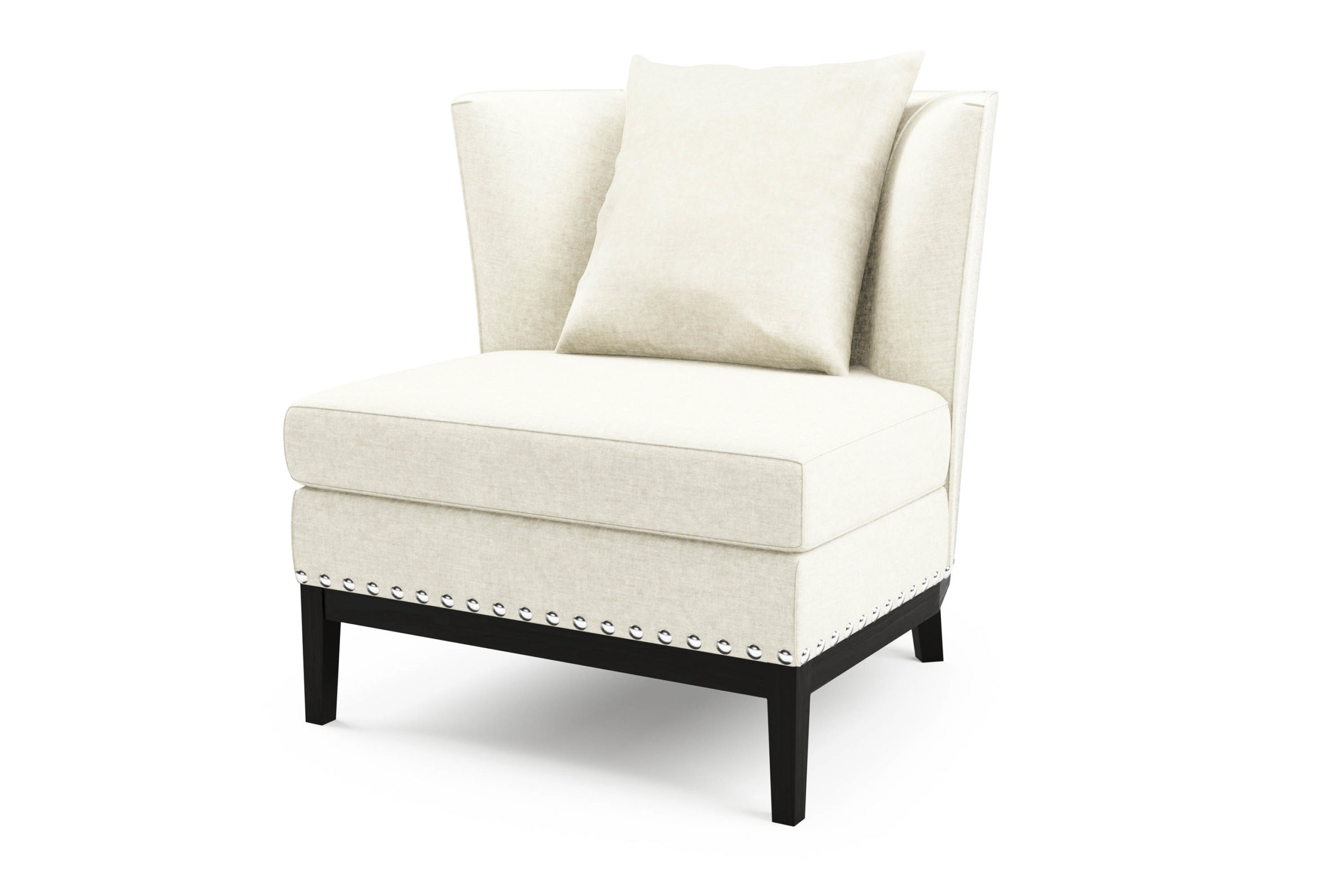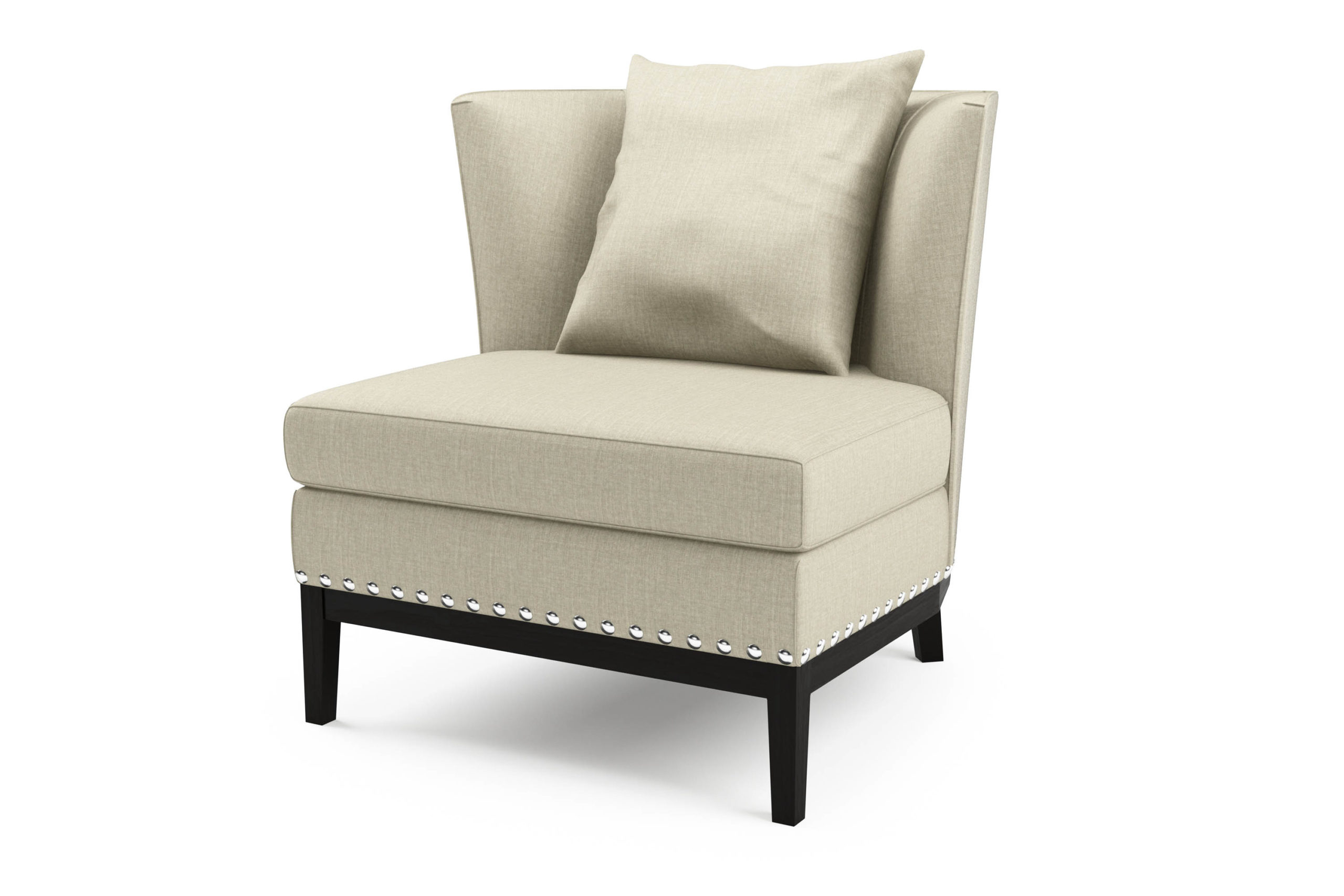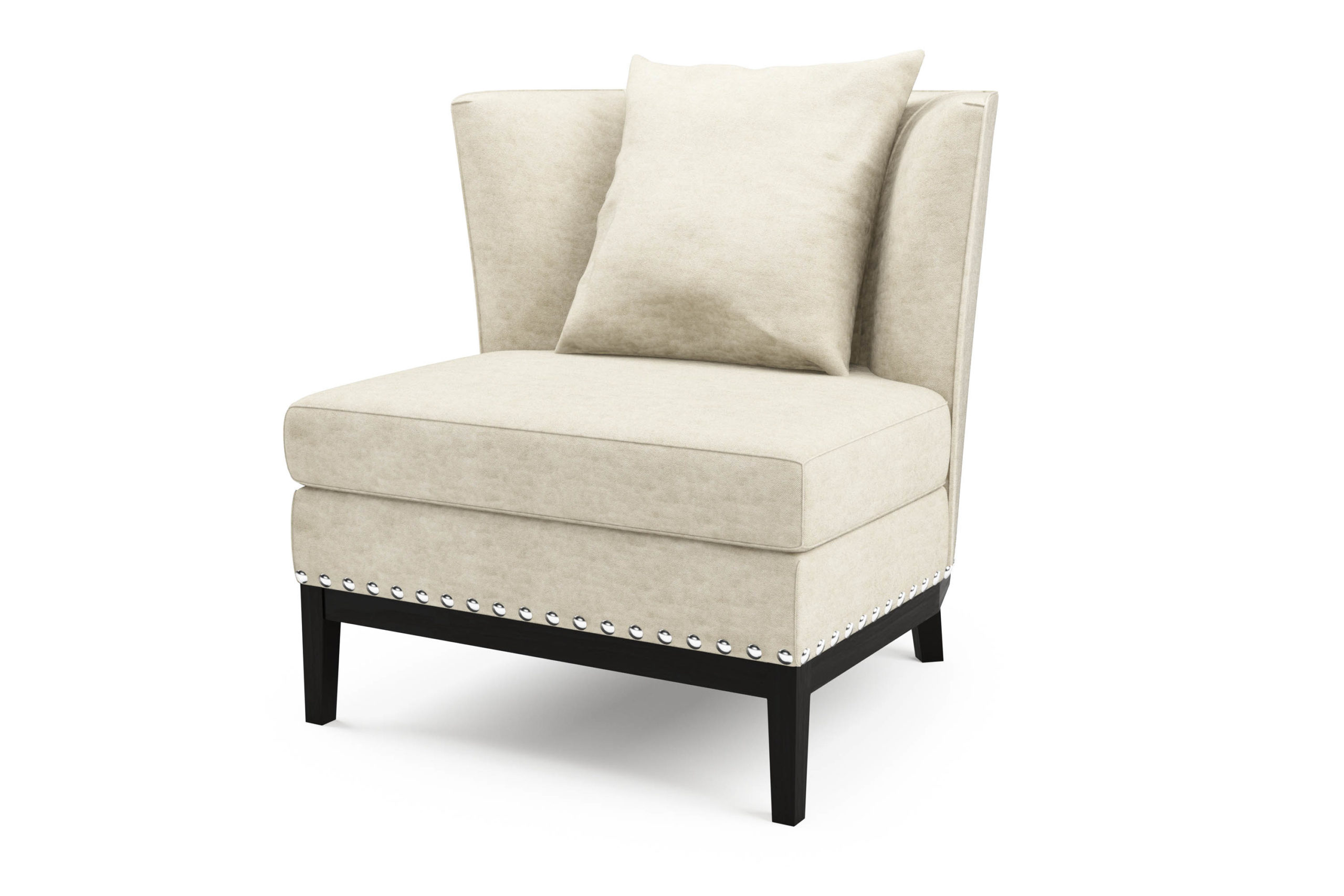 Cojín respaldo en pluma y fibra.