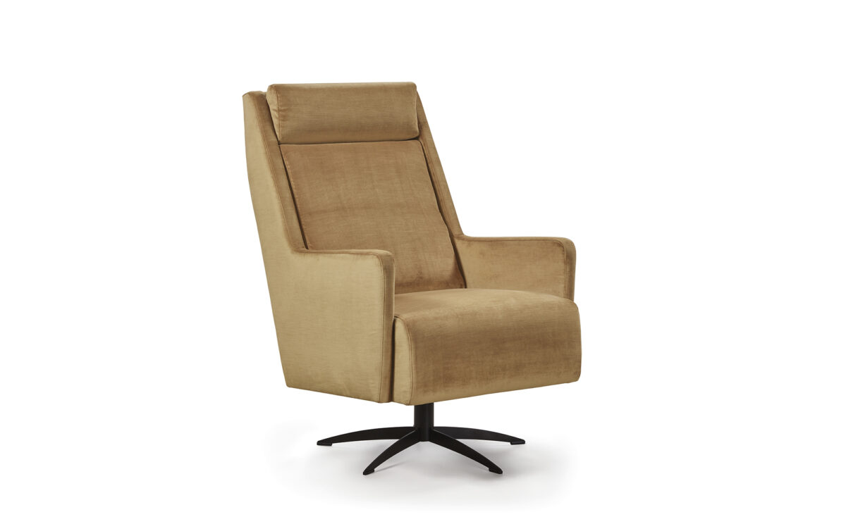 It highlights the comfort of its high backrest and the styling of her legs.