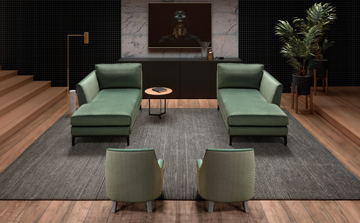 La présence d'une élégante chaise longue ajoute une touche distinctive à ce pièce de rembourrage de haute qualité et un confort exceptionnel.